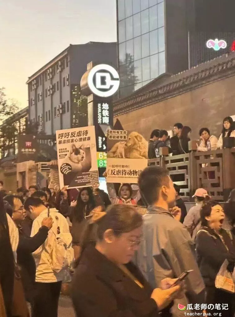 河北石家庄,有人举牌呼吁保护动物反极端控制。